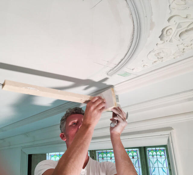Van strak gestucte wanden en plafonds, Beton Ciré tot een geornamenteerde plafond of (hier nog een term voor de vindbaarheid), het wordt vakkundig en met plezier uitgevoerd. Uitdagingen ga ik niet uit de weg en door kwaliteit te leveren is het eindresultaat altijd mijn visitekaart. Mijn werkgebied is in de regio Zutphen, Deventer en Apeldoorn. Specialistische restauratie opdrachten voer ik uit door heel Nederland.